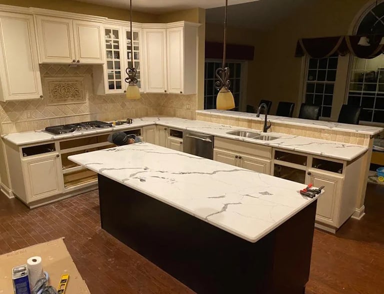 Elevate your home’s heart with premium stone surfaces. We specialize in transforming your kitchen with precision-cut countertops tailored to your lifestyle. From elegant waterfall islands to custom-fit backsplashes, owner Jose Carlos Espejel and our team handle every aspect of your surface upgrade. We combine over 12 years of experience with high-end materials to turn your kitchen into a high-performance masterpiece throughout PA, NY, NJ, and Delaware.